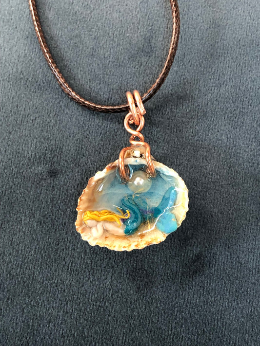 Mermaid Necklace, a hand sculpted miniature mermaid captured in a real seashell, from Padpod & Berrie's miniature world collection